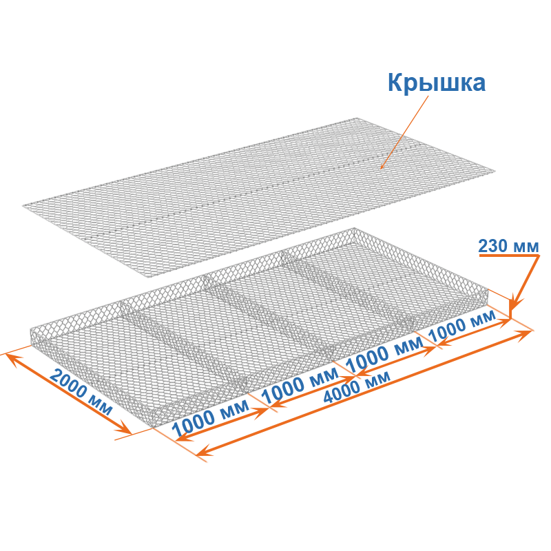 Матрасы Рено 4x2x0,23 (ячейка 60х80, проволока 2,2 мм, покрытие Цинк) применяются для защиты от эрозии.